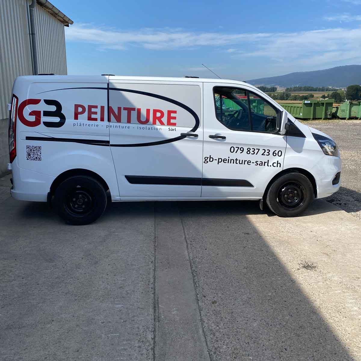 Design : Logo « GB Peinture » rouge/noir, coordonnées, QR code